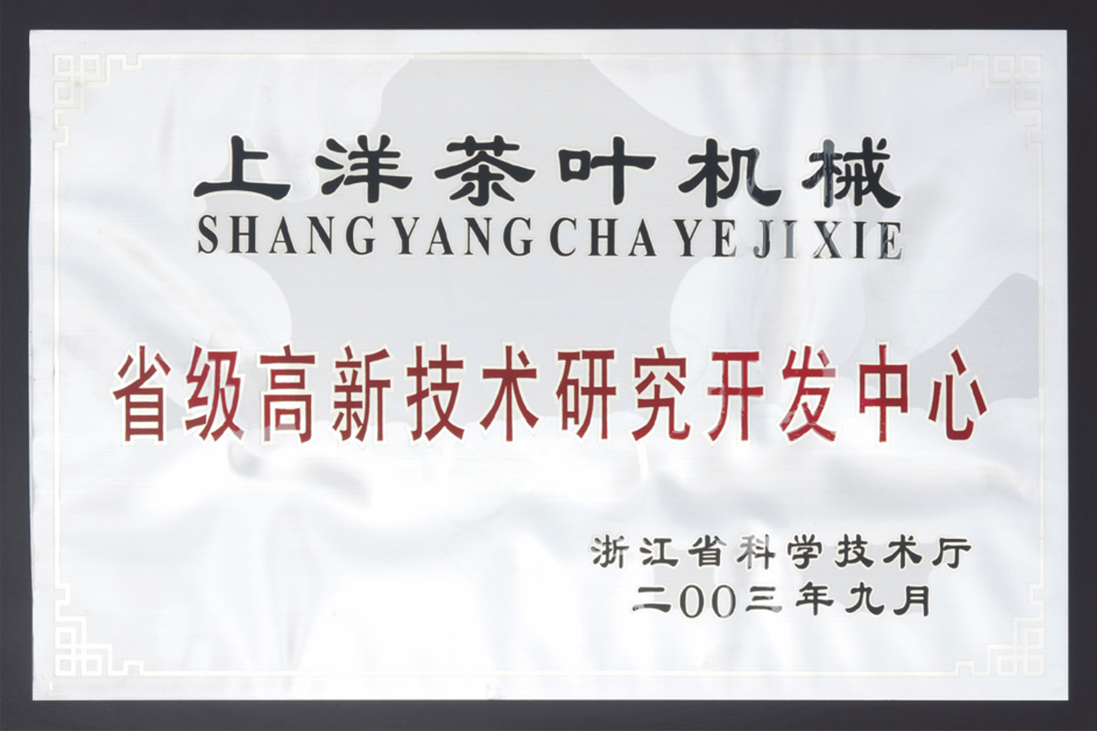2003年,“上洋茶葉機械省級高新技術研究開發中心”、“農業部南京農業機械化研究所上洋中試基地”先后掛牌成立,企業技術研發實力居行業領先水平。